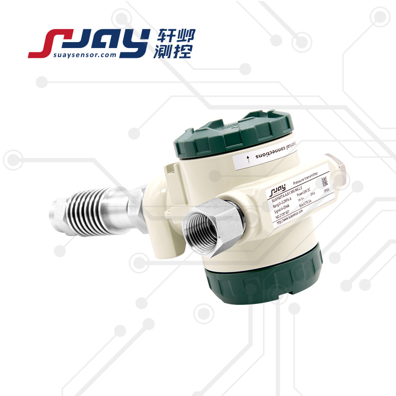 SUAY70 高溫壓力變送器采用耐高溫的硅-藍寶石技術的感壓膜片作為核心,匹配特殊的溫度補償和片上線性修正技術,使其在寬泛的溫區內有著良好 的綜合性能。藍寶石材料對溫度變化極不敏感,在-40 至380℃的高溫下,也有著ji佳的彈性力敏特性,不會產生疲勞、滯后、PN 節漂移等現象,并且抗輻射性能優異。耐磨損、抗疲勞的鈦合金感壓膜片,使該系列產品不僅可以承受高溫,更兼具良好的耐用性、抗沖擊性。利用β相高溫力敏材料與合理的結構設計,可將溫度擴展至 450-850℃。該系列壓力傳感器測溫范圍寬,壓力量程覆蓋范圍廣,綜合精度高且穩定性好,測量介質兼容性好,廣泛應用航空航天、航海及造船、石油化工、電廠電站、油田壓力、食品、醫藥、環保、科研院所等針對高溫流體的精準測量,是極佳的高溫壓力測量解決方案。