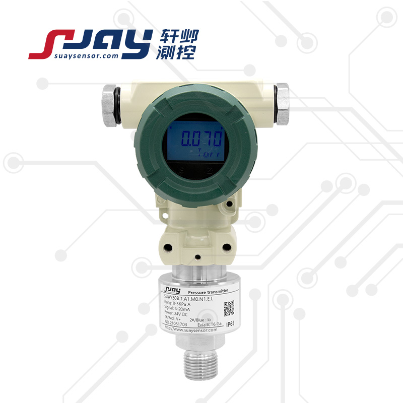 | SUAY30 | -100KPa~0 …10KPa ...7MPa | 4:±0.1%FS 2:±0.25%FS 1:±0.5%FS | A1:4-20mA V1:0-5V V2:1-5V V3:0-10V D:RS485 V0:定制 | M1:M20*1.5 M2:G1/4 M6:KF16 可選 M3:G1/2, M7:KF25 M0:定制 | N1:直出2米 N2:赫斯曼插頭 N3:航空插頭 | S:抗干擾 L:顯示 E:本安防爆 |